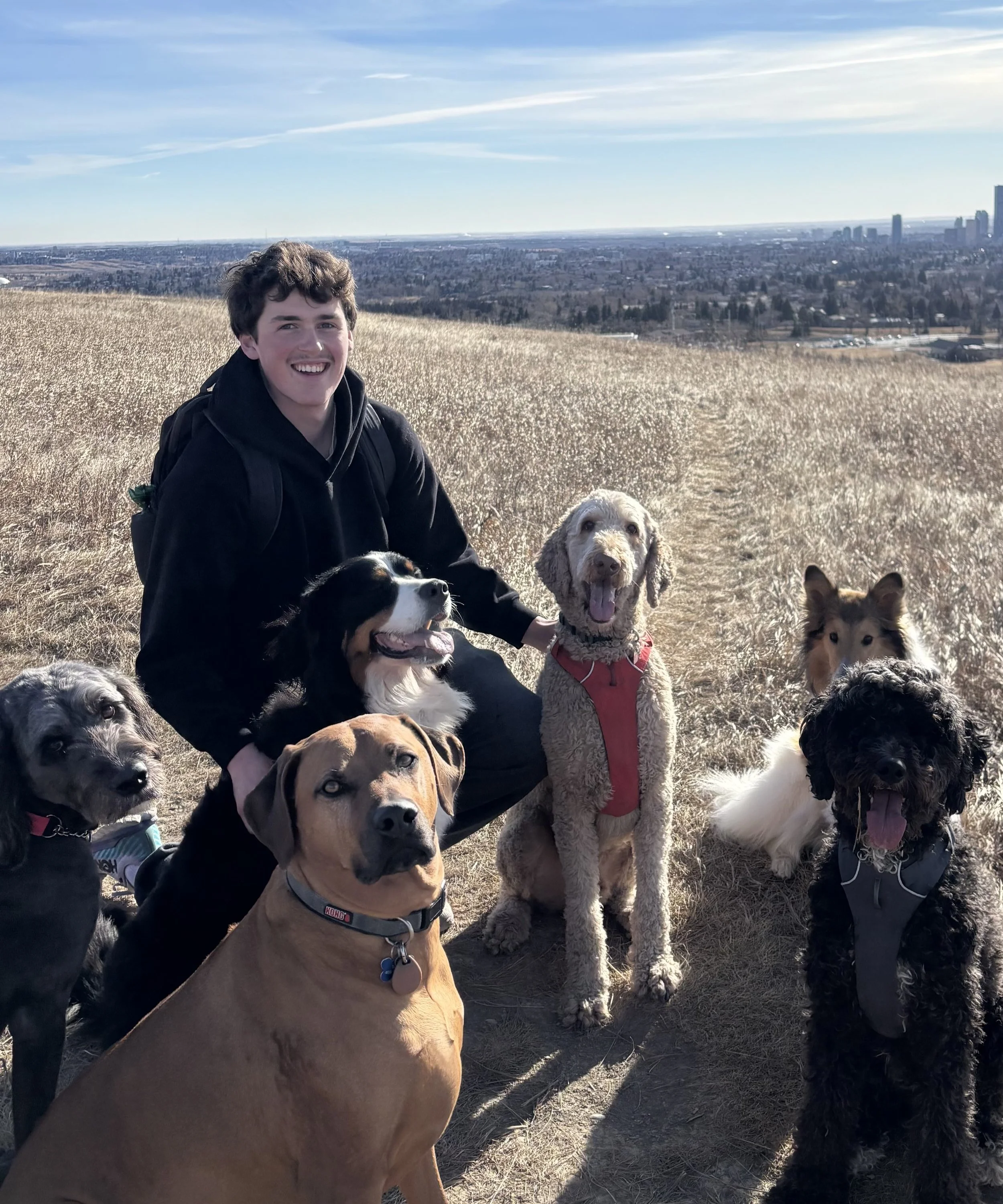 Beth is a passionate environmentalist, experienced skate-boarder and all-round pup enthusiast! A future jazz singer in the making; serenading the pups as they hike the YYC wilderness. Beth is our creative star.